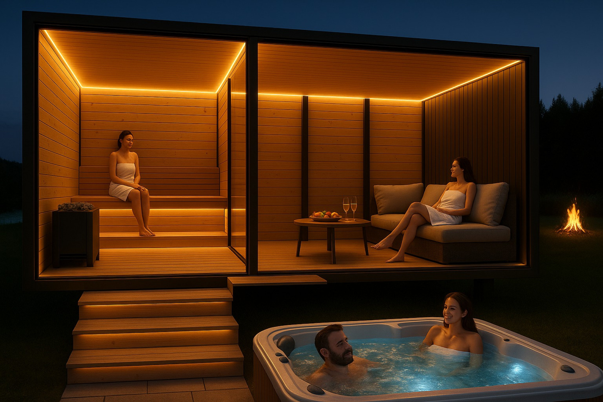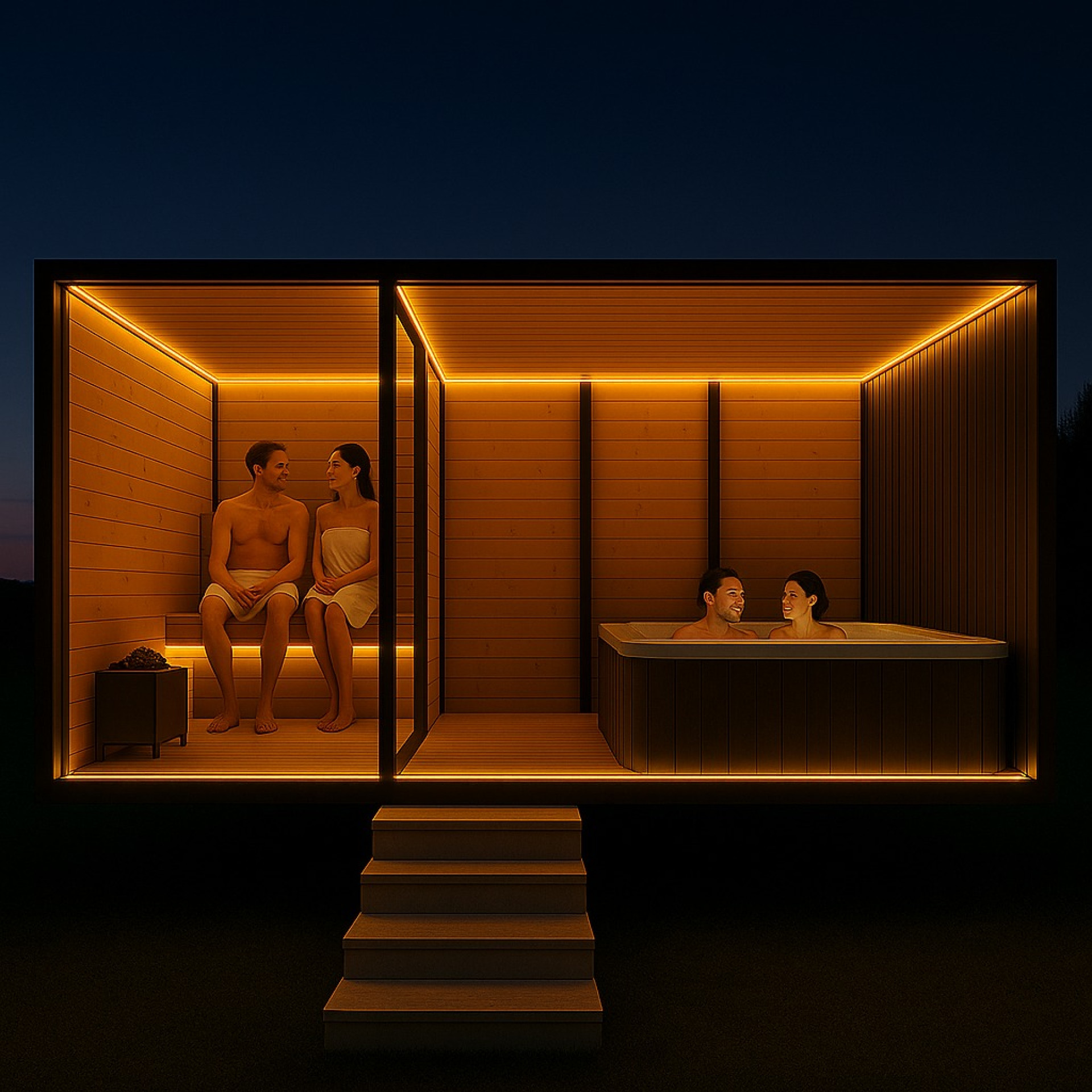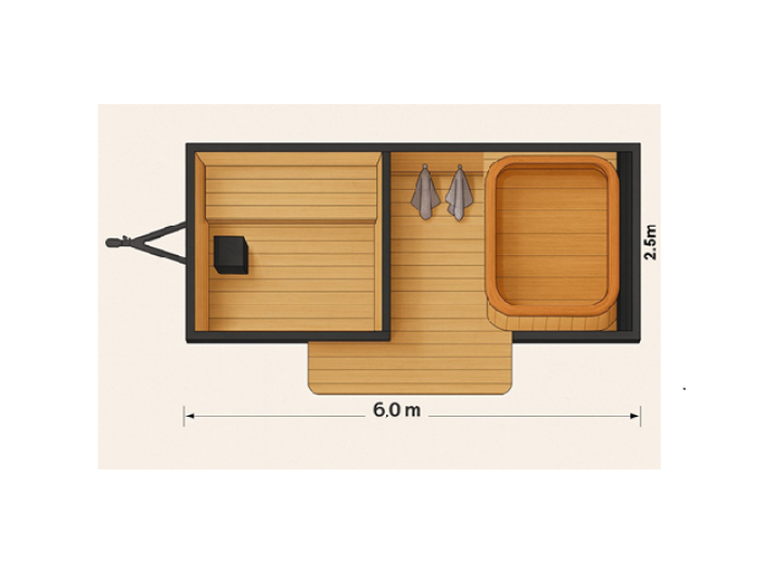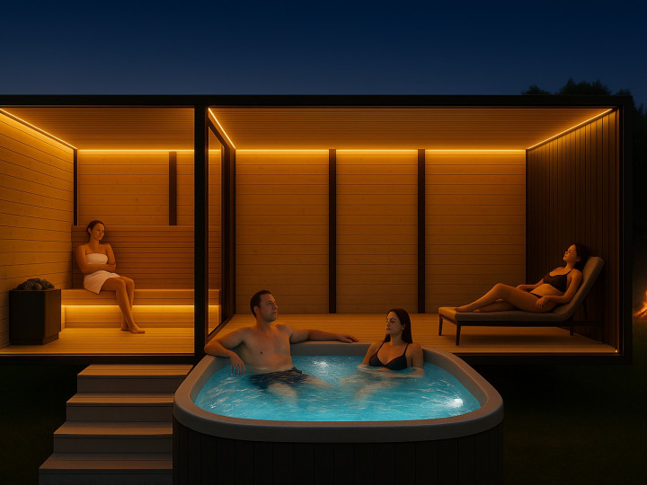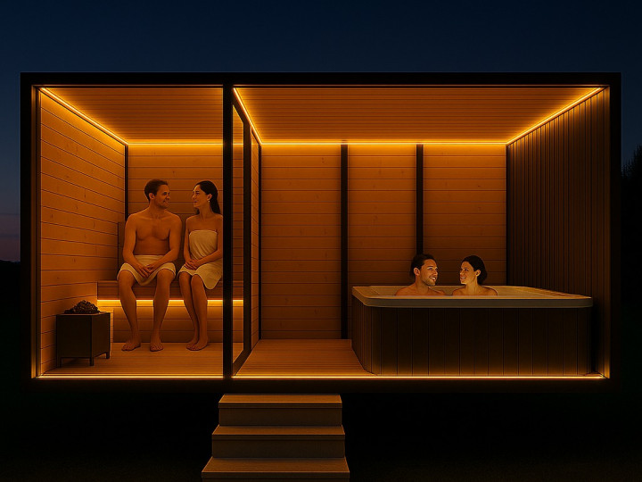 Uživajte u iznimnom opuštanju uz ovu modernu, mobilnu saunu s hidromasažom. Kombinira elegantan dizajn, udobnost i najkvalitetniju izradu – savršena za vaš vrt, uz jezero ili u vašem spa centru.
