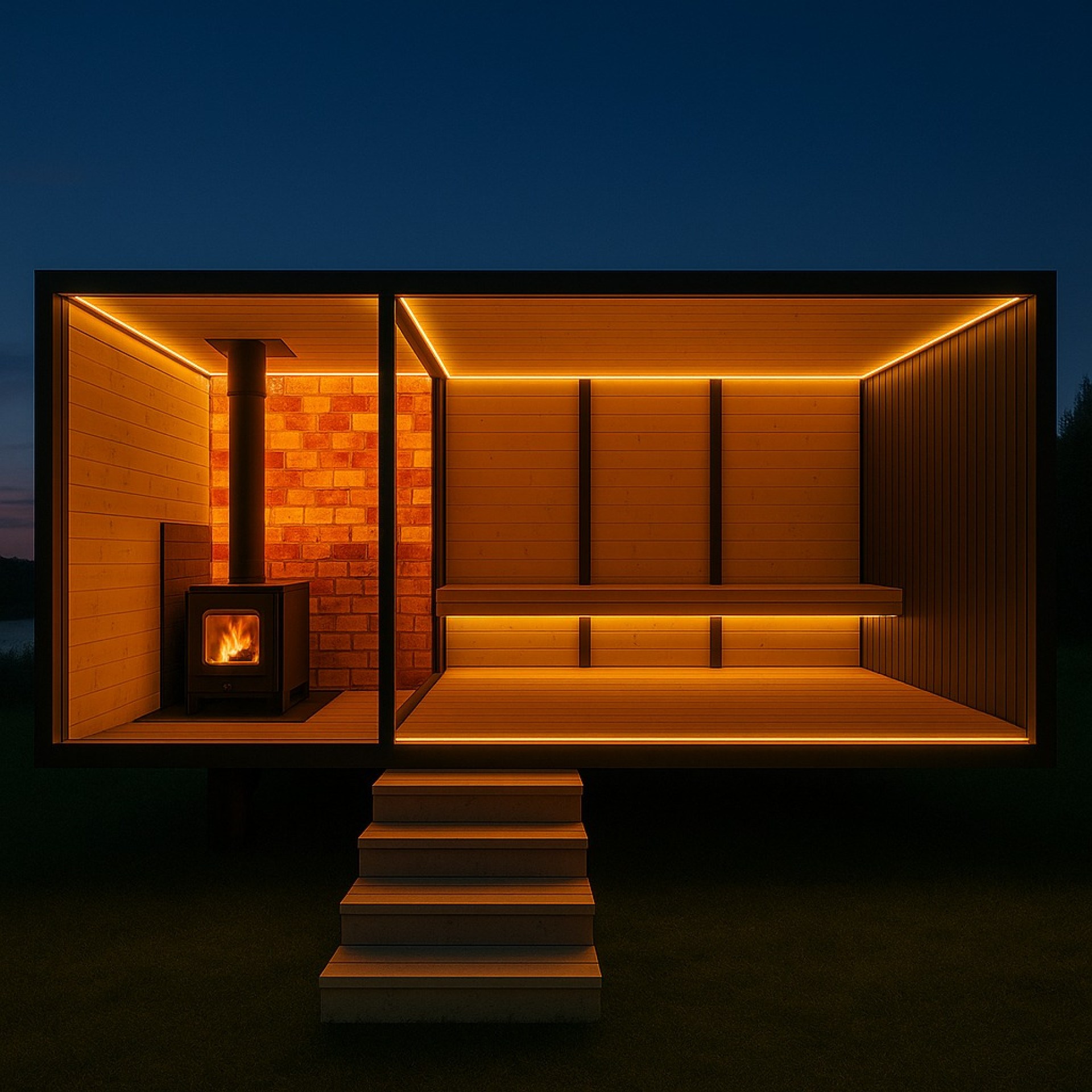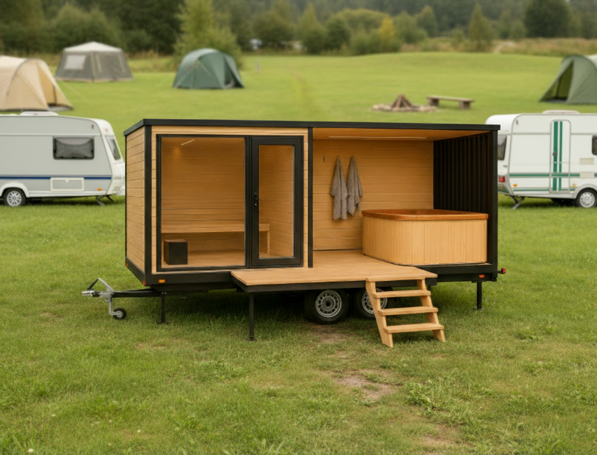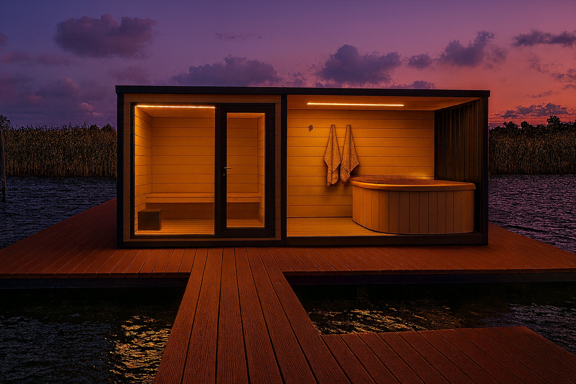 Uživajte u iznimnom opuštanju uz ovu modernu, mobilnu saunu s hidromasažom. Kombinira elegantan dizajn, udobnost i najkvalitetniju izradu – savršena za vaš vrt, uz jezero ili u vašem spa centru.